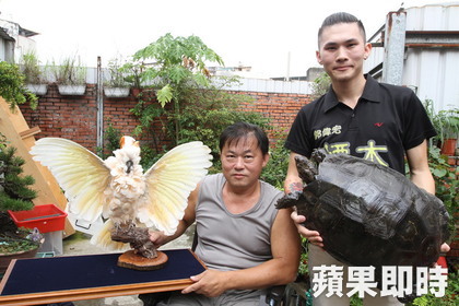 才22歲的郭偉宏高職念的雖然是餐飲科,但卻有一身製作動物標本的好手藝,從小耳濡目染跟著父親郭聯成(53歲)學習,6、7年來已獨當一面,開始接案服務,過去曾製作過5公尺長的鱷魚標本,也有客戶拿手指頭想做標本,都令他印象很深刻!郭偉宏說,製作標本過程很辛苦,要忍受屍臭味,有時動物死亡已久才要送來做標本,內臟都已開始腐爛,噁心臭味飄出,加上需使用防腐劑,因此工作時甚至要戴防毒面具,他製作過的標本包括常見的貓狗、鳥類、魚類等寵物,近年民眾喜歡養龜,烏龜也成一大宗。郭偉宏從幼稚園開始,就學著把自己養的甲蟲、螃蟹做成標本,國小寒、暑假開始,則與哥哥跟在父親旁邊學做標本、協助。不過郭偉宏坦言,那時候覺得做標本很辛苦,根本沒打算接下這門手藝,國中時憧憬當大廚,因此升學時選擇就讀餐飲科。不過孝順的郭偉宏也提到,升學後過看到父親因為職業傷害腰椎、呼吸道不好,且有時候標本重達數百公斤,一個人根本無法搬運,因此不僅假日常要回家幫忙,有時上課也要請假,因此轉念下定決心回家幫忙接起這個工作。近日郭偉宏接受屏東國立海生館委託,要製作保育類赤蠵龜的標本,已接近完工。而過去也曾做過包括5公尺巨鱷、蘇卡達陸龜、巨蜥、車輪冠鸚鵡等動物,包括海產店的標本,很多也是出自他的巧手。郭偉宏的父親是知名的動物標本製作高手郭聯成,郭聯成3歲罹患小兒麻痺, 20歲時和哥哥一起做飾品生意,賺錢後養了十餘隻鱷魚當寵物,但某次寒流過境,鱷魚死了,郭聯成很不捨,把一隻小鱷魚自學製作標本,成為他製作標本濫觴。不過30歲時郭聯成在股票市場跌了一大跤,慘賠近千萬,沉潛後32歲開始製作標本營生,20年間製作的大小標本已有近萬件,他說做這行很辛苦,要有興趣,郭偉宏自己也喜歡養陸龜等寵物,因此跟飼主更能溝通貼近需求。曾委託父子倆製作蜥蜴標本的飼主陳少帆說,心愛的寵物過世誰也不願意,因此會想把過世的寵物製成標本,是一種想要延續寵物陪伴在身旁的心情,當初經朋友介紹得知郭氏父子有在做標本,且技術也不錯,因此委託製作。郭偉宏回憶,除了動物,也曾有民眾因肢體受傷,洽詢想要把斷掉的手、腳做成標本,原因多是情感因素,曾有一名女子,因手掌長年跟著多出第6指,手術取下手非常不捨,因此委託製作項鍊標本紀念,令他印象深刻。( 俞泊霖/彰化報導)